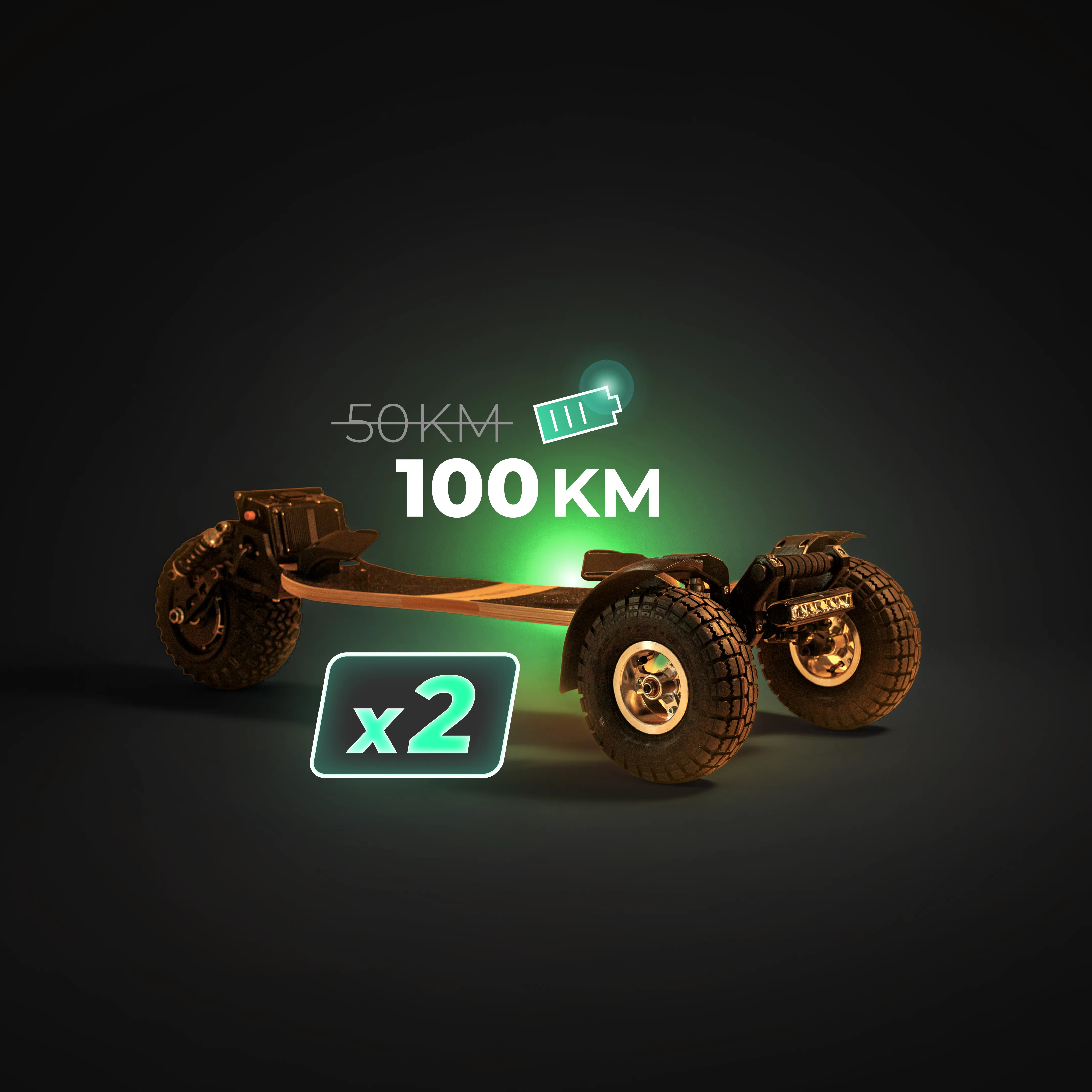 Doublez votre autonomie: allongez vos sessions grâce à l’upgrade batterie 25Ah offerte, jusqu’à 100km de ride pour zéro contrainte. Un avantage d’une valeur de 600€ et un gain de liberté totale, pour les aventuriers endurants. ⚡